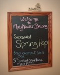 Funnily enough, it was also Untappd’s Session Beer Day, which meant we’d need to find a beer that was 4.5% abv or less. Naturally, my fridge didn’t have anything that sessionable (there’s some Asian beers in there, but they were clocking in at around 5% or more) and our first stop wasn’t going to help us either: Mayflower Brewery. Their weakest beer is the Golden Ale at 4.7%, just over the cutoff. We decided to pop down anyway for a visit and a taste of their current seasonal, Spring Hop Ale. We met up with the amusingly sharp-tongued Sarah, and sales rep Christina, whose business card boasts the title of “Territory Manager,” which sounds like there would be knife fights involved, necessary to guard your turf. We set about tasting right down the line of taps (though the Spring Hop is recommended after the pale ale, but before the IPA) and gave the new brew a try. They refer to it as a “red, hop aroma, ale” because they like to make up names for these things (their autumn beer is labeled as an “American Dark Wheat beer”).
