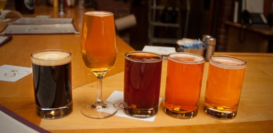 We were expecting the Irish Lad and Wifey to be on their normal timetable, that is, 20 minutes late, so we were entirely unprepared when they showed up relatively close to 6pm. We had just ordered our five samples, and were about to start tasting when they showed up. It took another few minutes before CBC would seat us, then some awkward transferring of small glasses to the table. Time to taste.