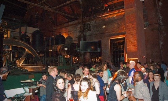Just inside the door, we ran into co-Bully Boy Will Willis, and chatted for a bit before continuing farther in to the museum. Holy snotrockets. This place was HUGE. Three story-high machinery lit with accent lights towered above, while the DJ pumped out remixes of classic Prohibition-era ditties (before switching over to some sweet Ace of Base). Several bars were set up throughout