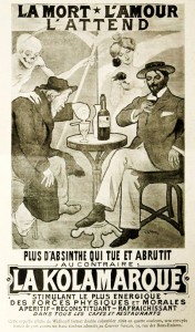 In the 1860s, a bug called Phylloxera was brought to France and decided it really liked to eat grapevines, and it devastated the industry. Seriously. Like 40% of all the vineyards in France were wiped out. It’s called the Great French Wine Blight. So wine and brandy (made from grapes) was pretty hard to come by and absinthe became the popular drink of choice. By the turn of the century, the vineyards were recovering (the solution was to graft bug-resistant roots from North America onto the French vines) but